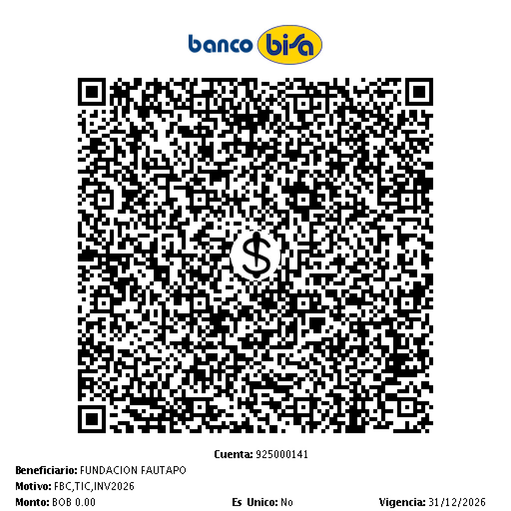 2 En caso de realizar transferencia electrónica tomar en cuenta los siguientes datos. A nombre de la FUNDACIÓN FAUTAPO con el NIT 1024503027.
